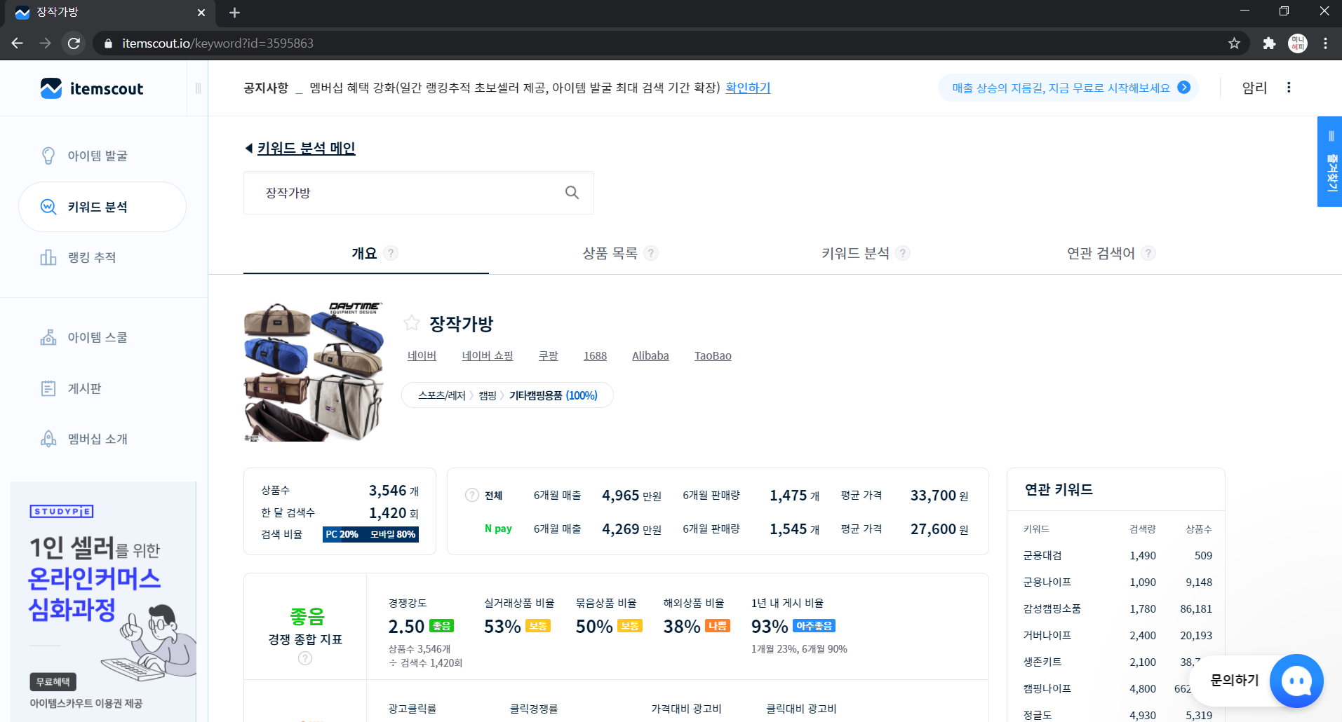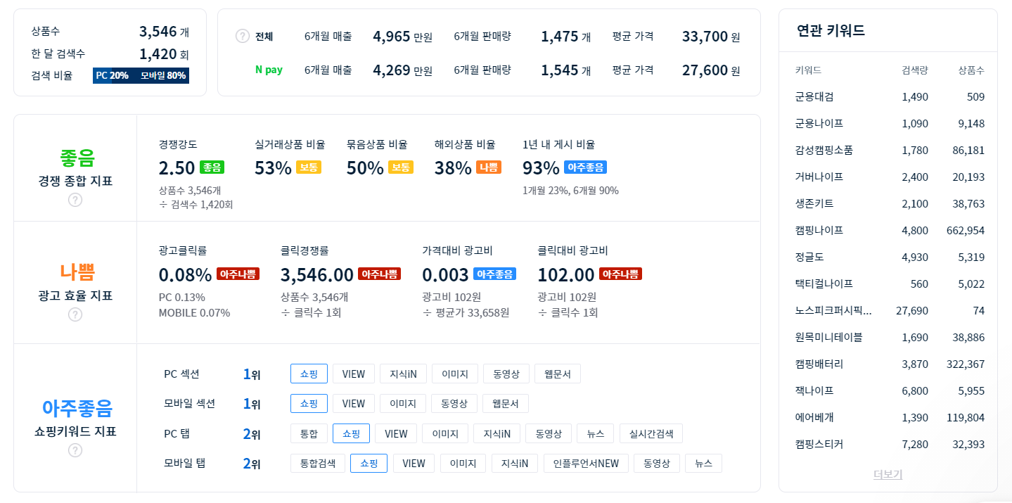 경쟁강도가 2.5 (상품수/검색수) 라서